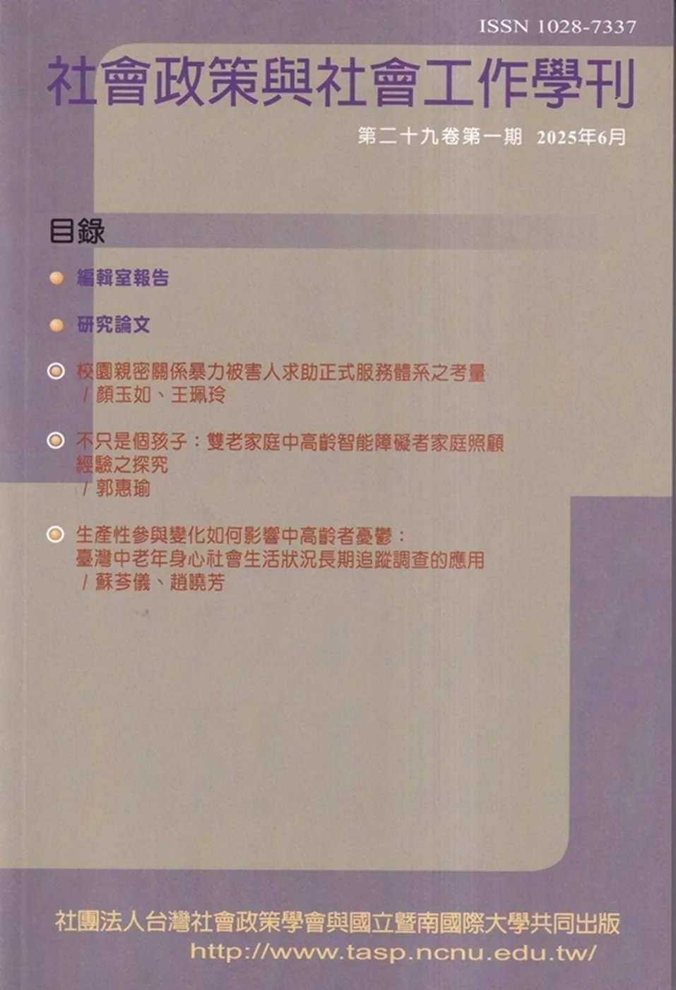 社會政策與社會工作學刊(第二十九卷第一期)2025.06月
