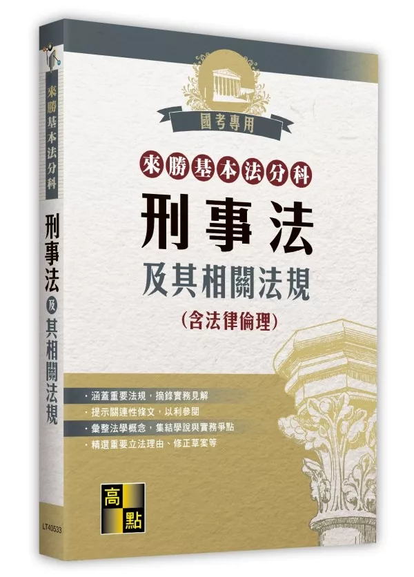 本書收錄重要法學概念、實務見解及最新刑事法規,清楚剖析法條精義,充分理解修法動態,精心編整,重要且常用之法規及相關大法官釋字解釋文,輔以解釋爭點貼心設計,最適合在校生、法研所、國考、實務界等所需之相關法規(含法律倫理),資料完整豐富、輕便易攜帶,為坊間研習刑事法時最佳之工具書。