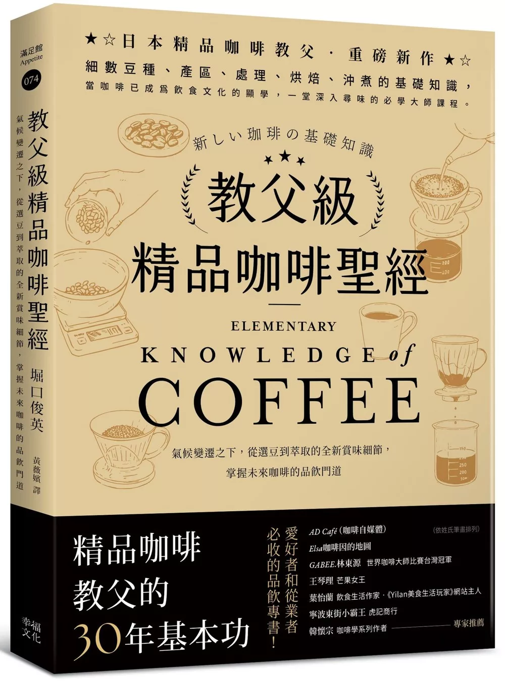 堀口俊英是日本精品咖啡教父,帶領了日本開始喝精品咖啡的風潮,本書是他以過往的實務經驗,加上科學的數值分析,補完咖啡風味輪廓圖。以實測的酸度、脂質量等數據,和精品咖啡協會的評分,分別從烘焙度、生產地、處理法和豆種等方向,一一列出影響風味的因素。