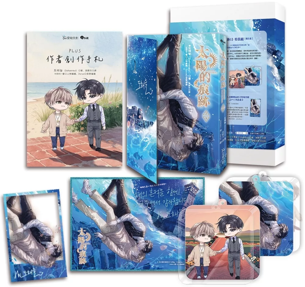 第三重:特殊裝幀書封,大折口上是修復成功的燈塔,打開折口則會露出沉在海底的遺跡及落入海中的兩位主角。折口上還有燙銀作者印簽,值得珍藏!