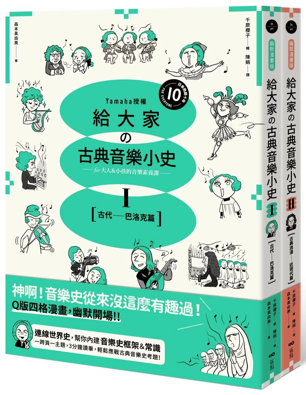【山葉音樂出品,給大家的音樂素養課【幽默漫畫版】套書】(二冊)【博客來獨家贈品版】:《給大家?古典音樂小史Ⅰ【古代─巴洛克篇】》、《給大家?古典音樂小史Ⅱ【古典浪漫─近現代篇】》