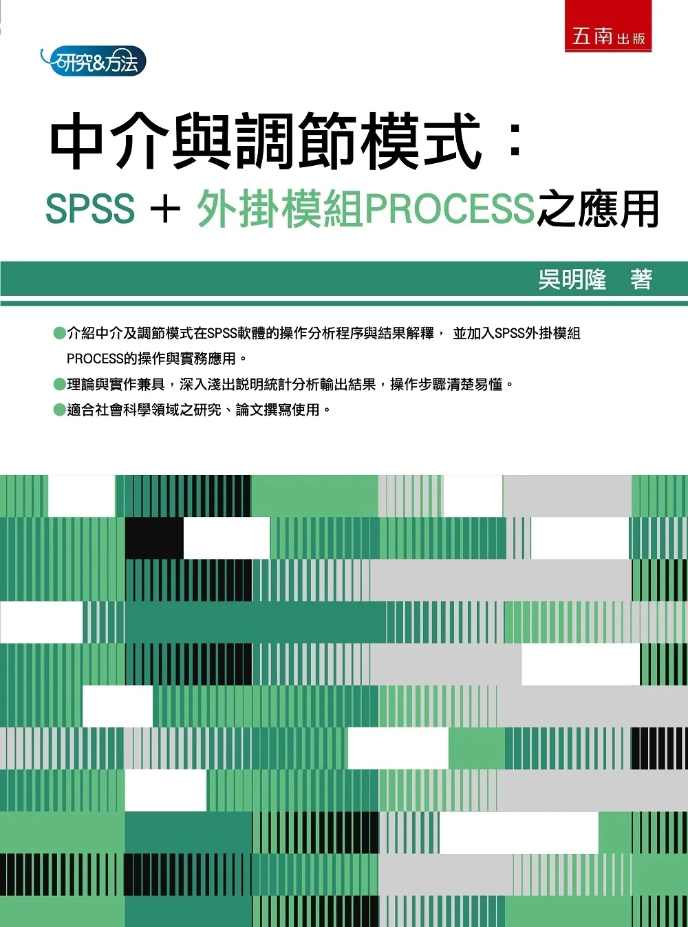 本書以實務應用及使用者界面為導向,對於以SPSS統計套裝阮堤來進行量化研究的使用者而言,實質上相信有不少助益,綜括本書的內容有五大特色:(1)完整的操作步驟與使用程序介紹,研究者只要依書籍步驟,即能完成資料統計分析工作;(2)操作畫面與說明以SPSS中文版視窗界面為主,符合多數研究者的需求;(3)詳細的報表解析與說明,讓讀者真正了解各種輸出統計量數的意義;(4)報表結果的統整歸納,「表格歸納」可作為論文寫作的參考;(5)內容豐富而多元,包括量化研究中使用者最常使用到的多變量統計分析方法。