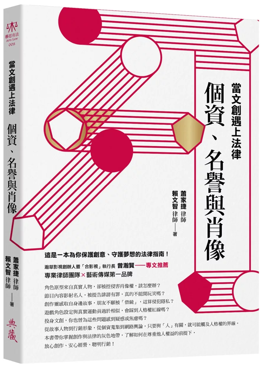 李彥甫(聯合數位文創、有你共創數位公司董事長)∣本書由淺入深,除了法條與案例,其實更加入許多前瞻的章節。我個人特別關注未來趨勢,所以其中談到:全經紀合約、IP授權交易、NFT、社群媒體等內容,都是過往市面此類書籍不會碰觸的未來領域,非常值得已是或將是從業人士的讀者,用力地參考。