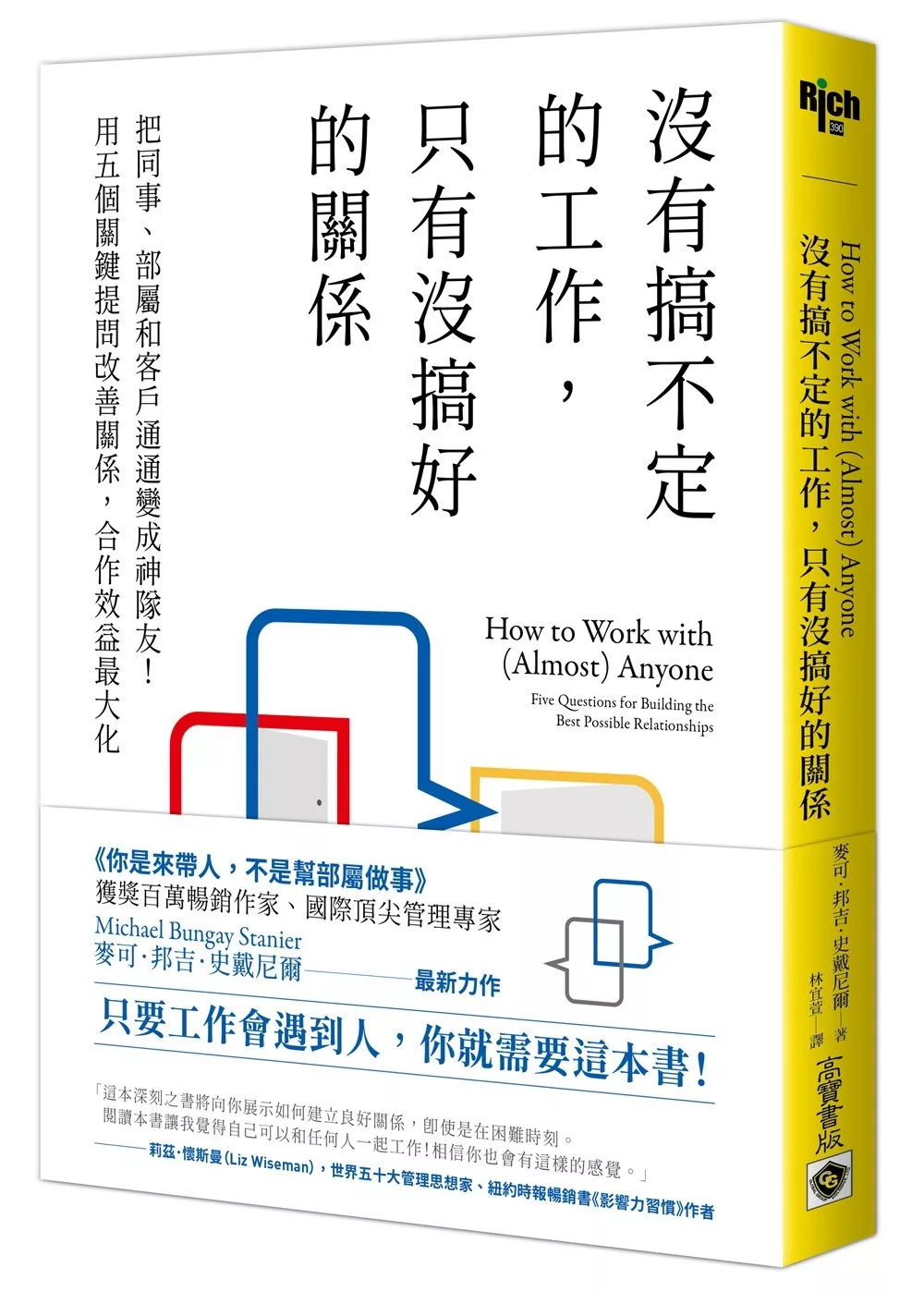 「邦吉.史戴尼爾切入的角度非常正確。我們都是習慣的產物,從習慣裡,我們創造自己、創造生活與周遭的世界。這是一本操作手冊,協助你將習慣的威力轉變成教練的威力,透過其他人或與其他人的共事來完成更多事。不要只讀這本書,要去練習、去應用,將書放在桌上隨時提醒自己,建立自己的教練式領導習慣。」──米雪兒•米蘭(Michele Milan),多倫多大學羅特曼管理學員高管學程執行長