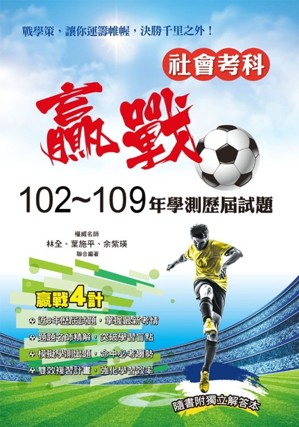 為了幫助同學們熟悉分科測驗的命題方式,特聘補教權威名師針對最新命題趨勢、網羅各類題庫,輔以Learning Analytics 統計,編寫3回模擬試題讓學子們實戰演練,並輔以擬真的卷卡合一答案卷拉頁,提前熟悉應試作答的技巧,掌握得分關鍵,馳騁考場、傲視群雄!