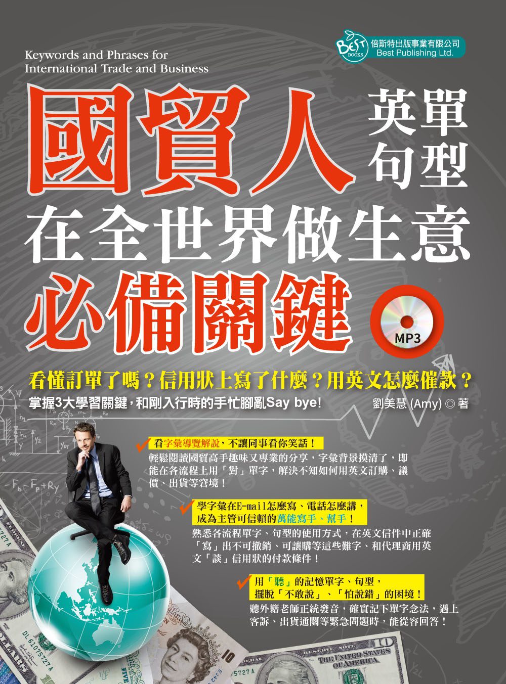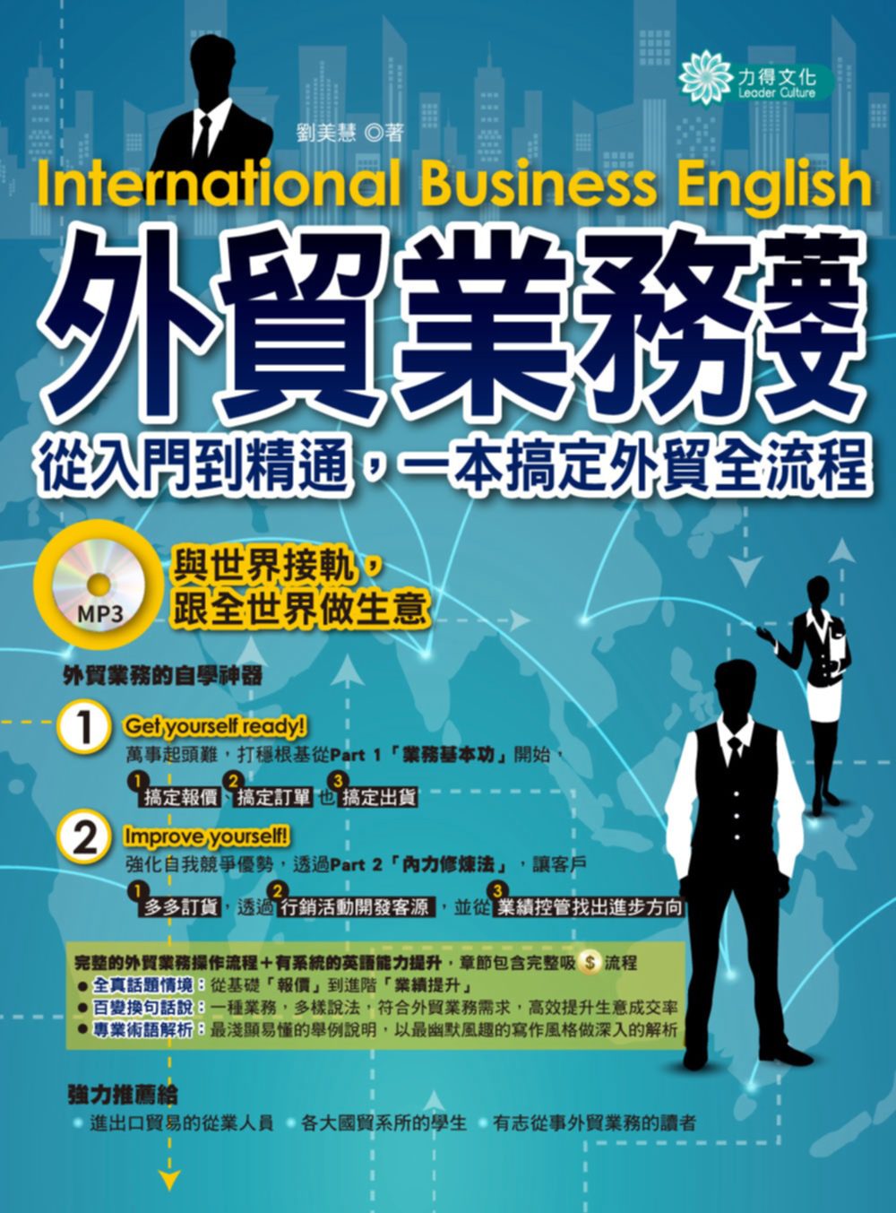 『對話』、『商業書信句型練習』、『關鍵國貿術語解析』和『商用英文單字』以最淺顯易懂的範例說明,以最幽默風趣的寫作風格,引領讀者深入瞭解各種國際貿易的商業情境。