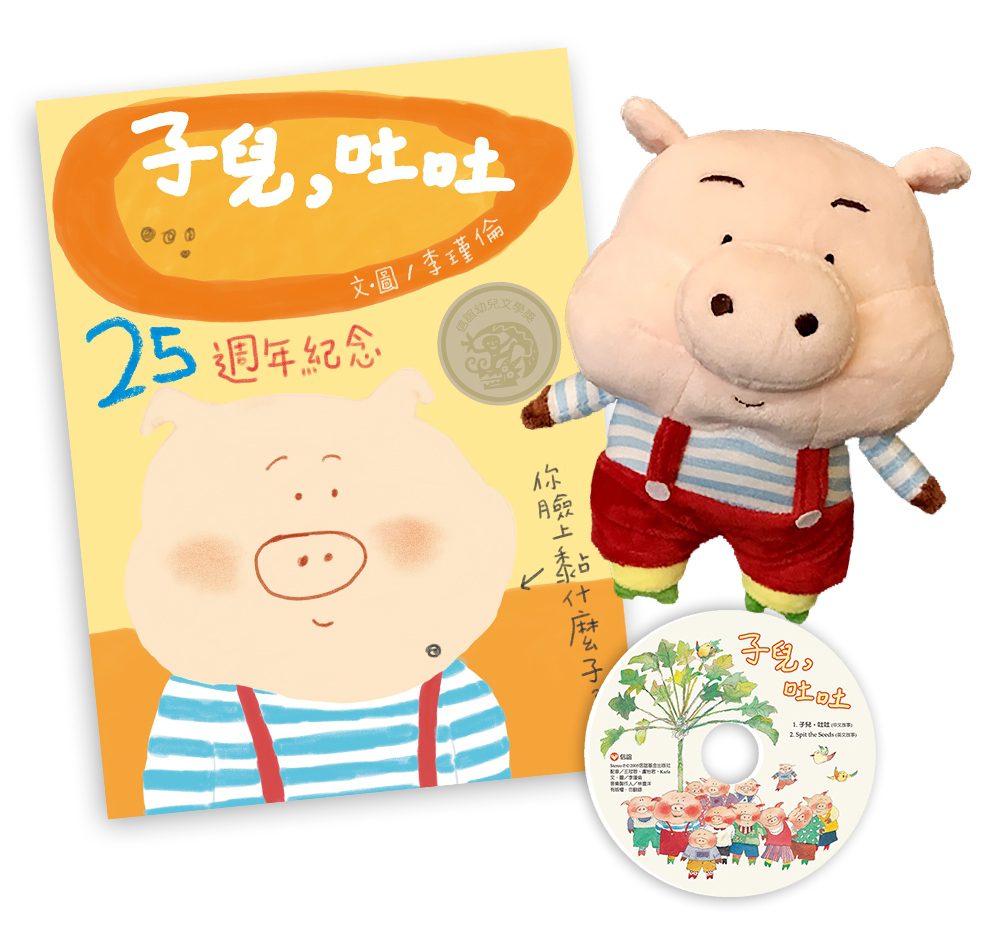 《子兒,吐吐》紀念版,內文加入李瑾倫親筆手寫字,搭配胖臉兒臉上黏子兒的可愛書衣,隨書附贈QR Code,掃描即可隨時收聽中英文雙語故事朗讀及配樂,透過道地、自然的英文發音,邀請大小讀者享受不同語言的閱讀趣味,再次回味胖臉兒,品嘗這份恆久不變的赤子之心。