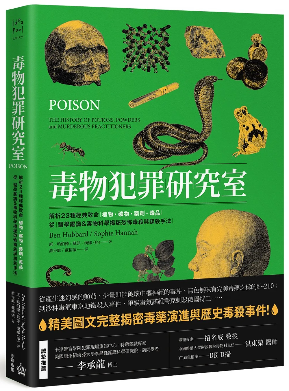 所有毒理學家都知道,毒藥和解藥之間通常僅一線之隔,關鍵只在於劑量的多寡。《毒物犯罪研究室》介紹各種無聲奪命的神祕毒藥,引人入勝地寫出下藥者、濫用者和受害者的故事,從埃及豔后克麗奧佩特拉、波吉亞家族和秦始皇,到現代情報特工及恐怖分子各種形式毒殺,都能透過精美圖鑑對照,深入瞭解歷史上的權慾薰心者、鋌而走險者和各派危險分子,是如何使用這些毒物來達到他們的目的。更能透過科學與醫學的鑑定,了解常見毒劑的起源、效用、致命度及解毒方式。