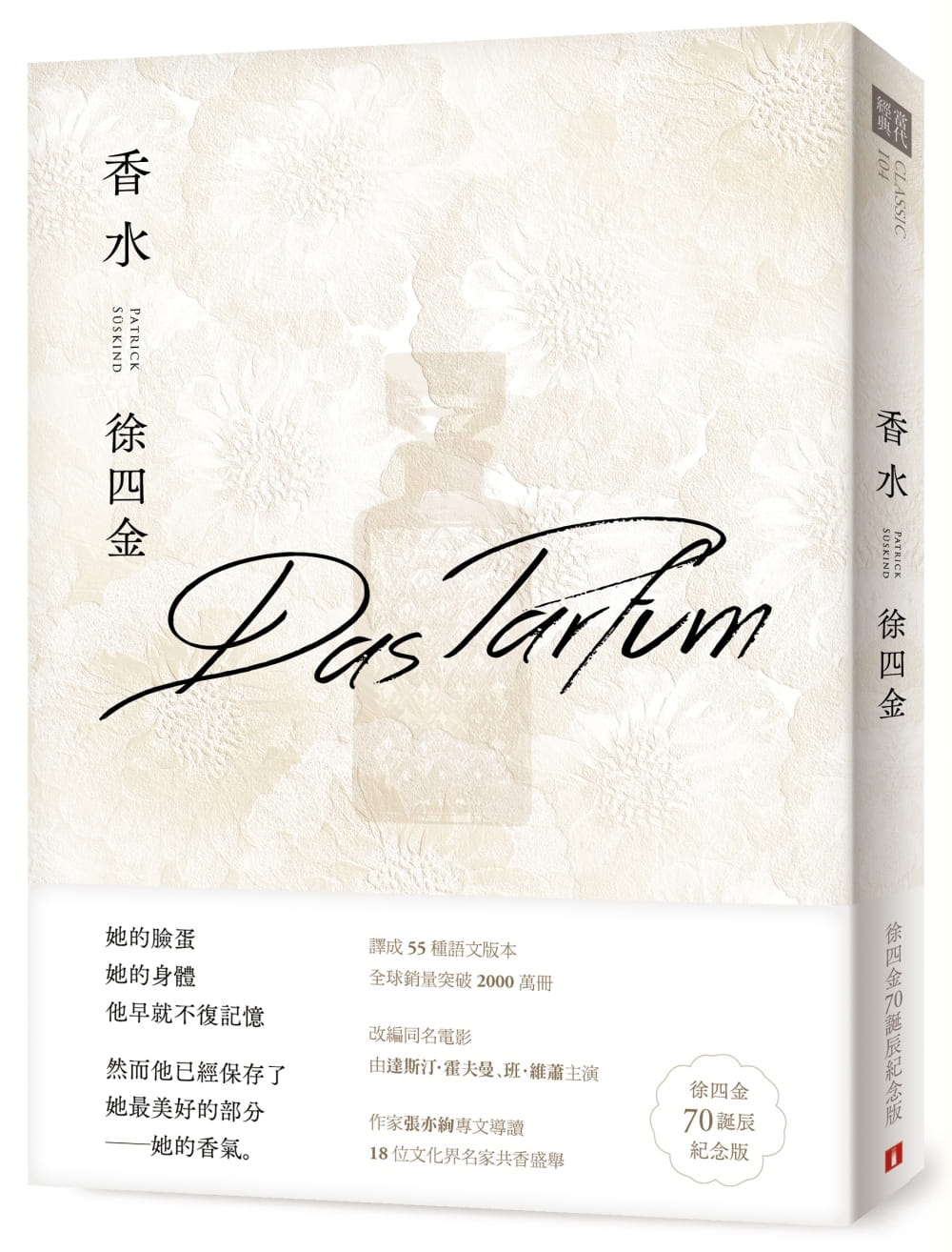 在他眾多的經典作品中,最為人稱道的便是一九八五年出版的《香水》,這本以嗅覺為主題的長篇小說,在德國甫出版便賣出四十萬冊,並連續九年登上德國《明鏡週刊》暢銷書排行榜,更風靡了全世界,被翻譯成四十二種語文版本,全球銷量已逾一千五百萬冊,迄今仍是最暢銷的文學作品之一!《香水》同時已被改編拍成電影,由『蘿拉快跑』國際名導演執導,影帝達斯汀霍夫曼主演,是德國電影史上斥資最巨的作品。