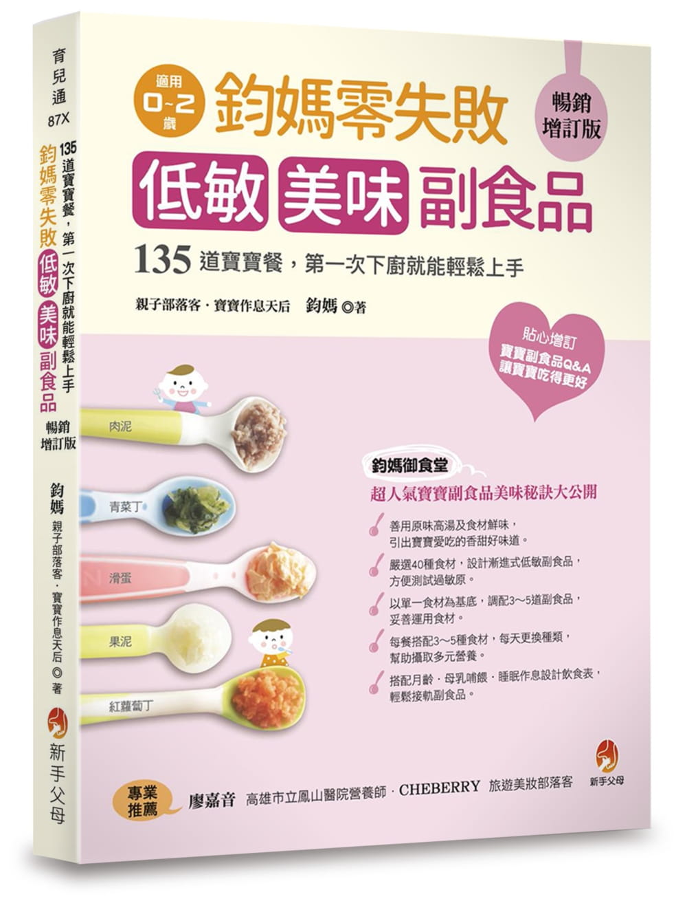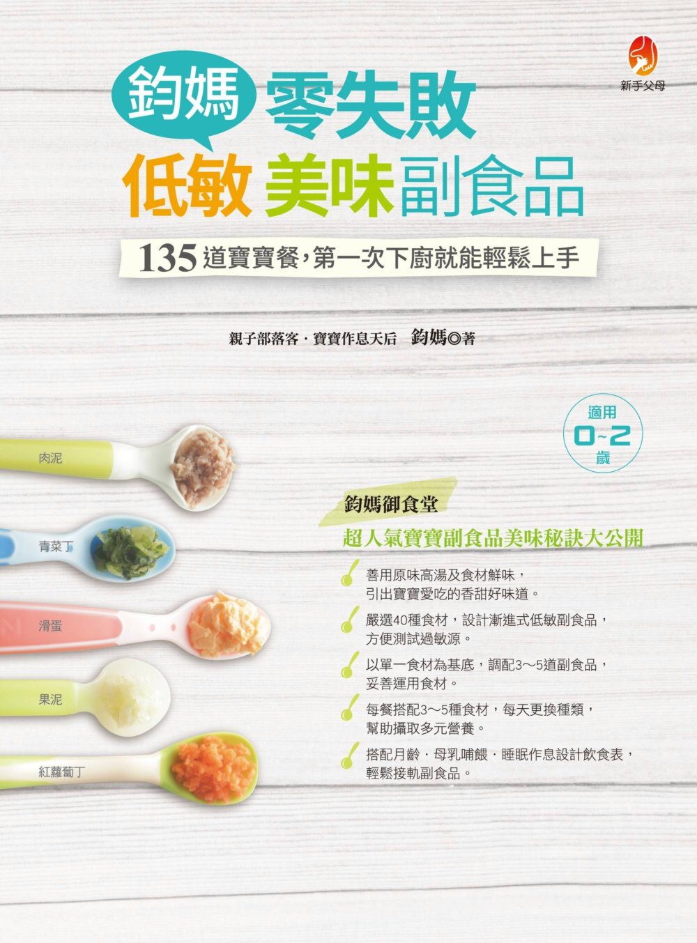方法正確,吃對營養,對於寶寶作息、嬰兒教養、副食品製作等,鈞媽獨特的育兒法,不受限於百歲、親密兩派,融合各家所長,親身的經驗,發展出一套最適合自己和孩子的快樂育兒經。──江桂香(《嬰兒與母親》雜誌總編輯)