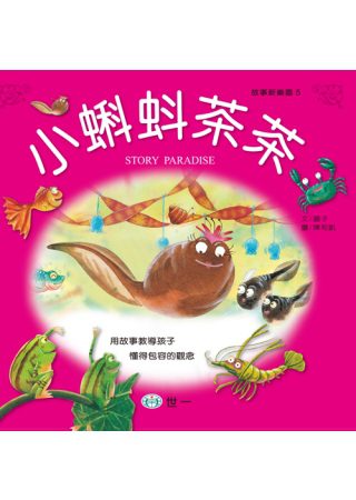 藉由書中溫馨的對話及有趣的情境,讓孩子隨著故事主角小蝌蚪茶茶的帶領,一起進入茶茶的歡唱派對,了解青蛙的成長過程。藉由閱讀培養孩子包容他人的觀念。此外,書中的「一起玩一玩」是配合故事主題的延伸遊戲,也是親子互動的最佳橋梁!
