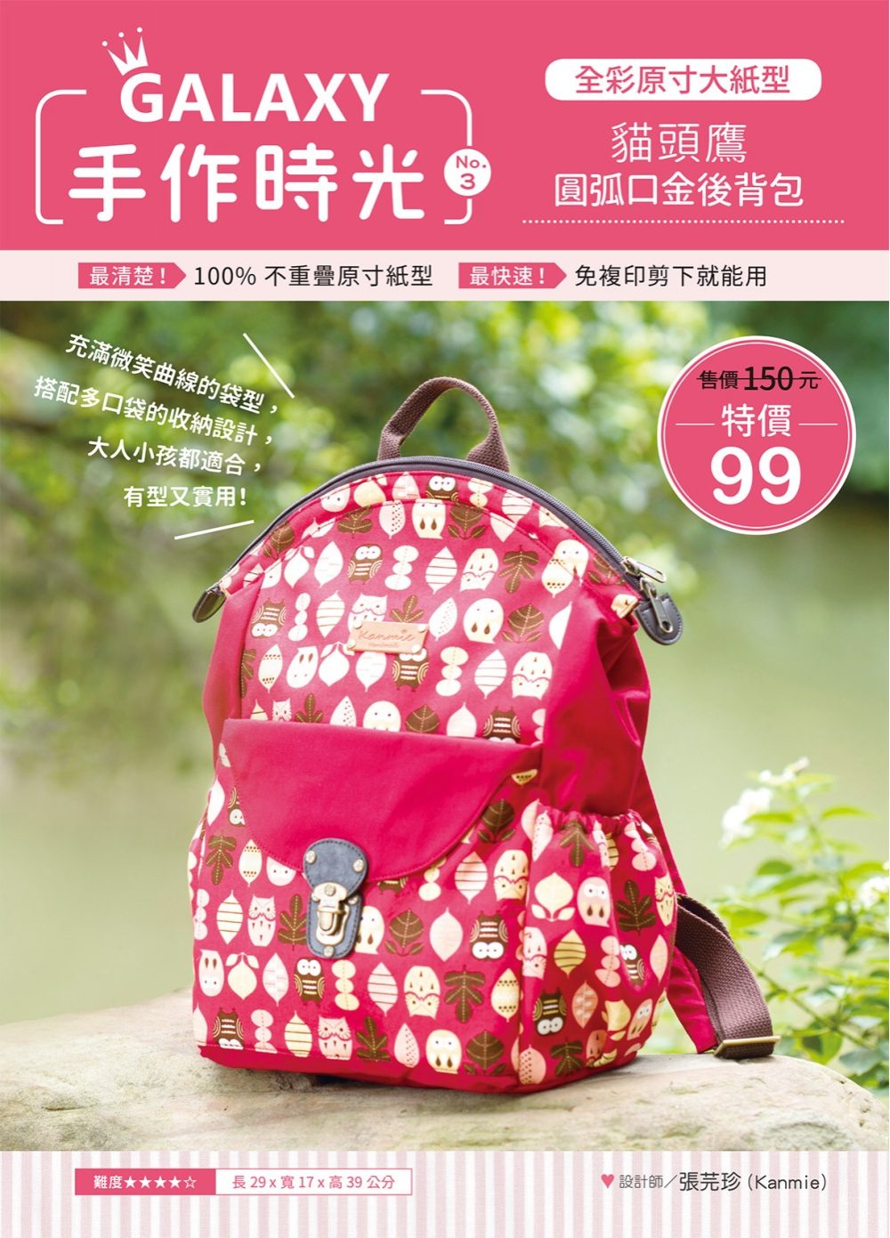 GALAXY手作時光B no.3:全彩原寸大紙型×完整教學講義:貓頭鷹圓弧口金後背包