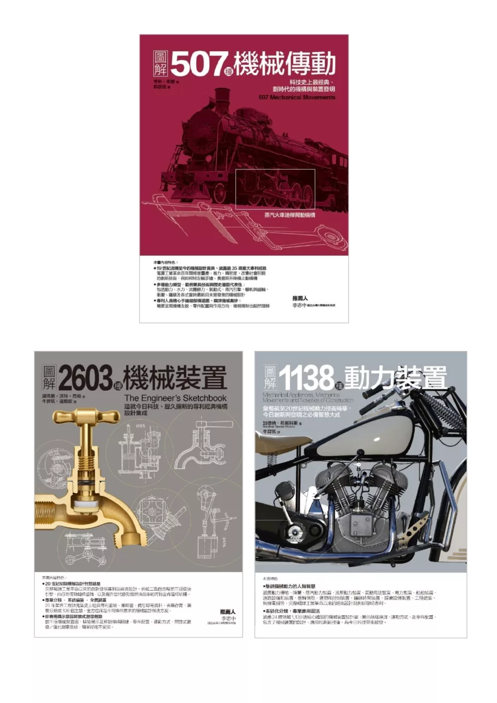 由於傳動系統和齒輪廣泛應用於各種產品中,是機械的主要元件,用於構成機械的重要環節,齒輪與齒輪傳動系統設計正確與否,將嚴重影響該機械的性能。當代發明家、設計師、自造者、工匠,和任何傾心於技術發展、機械之美的人都會認同這本書作為靈感寶庫的價值。在自造運動和智慧機器人未來大趨勢中,設計人員更可從中了解傳動系統的原理以奠定深厚基礎、啟發更大的創意。