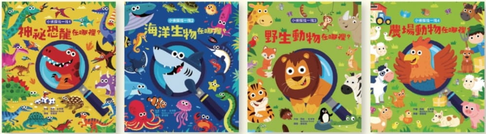 全系列包含:神祕恐龍、野生動物、農場動物、海洋生物四大主題,豐富孩子的視覺觀察力與認知學習!