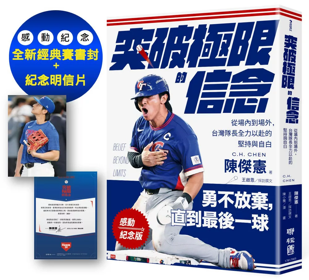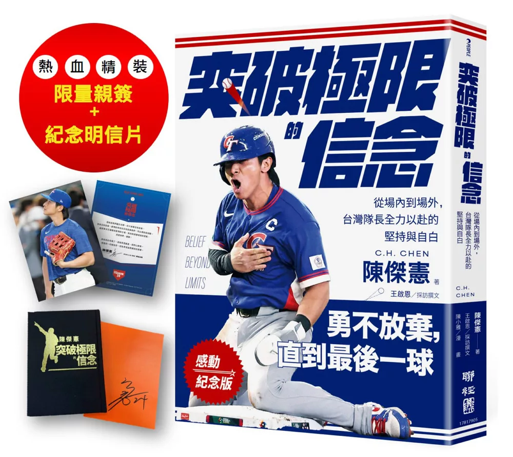 突破極限的信念「陳傑憲」:從場內到場外,台灣隊長全力以赴的堅持與自白【限量精裝印簽典藏版】 (限量典藏「勝利球衣小卡組」+「關鍵一擊立牌」)