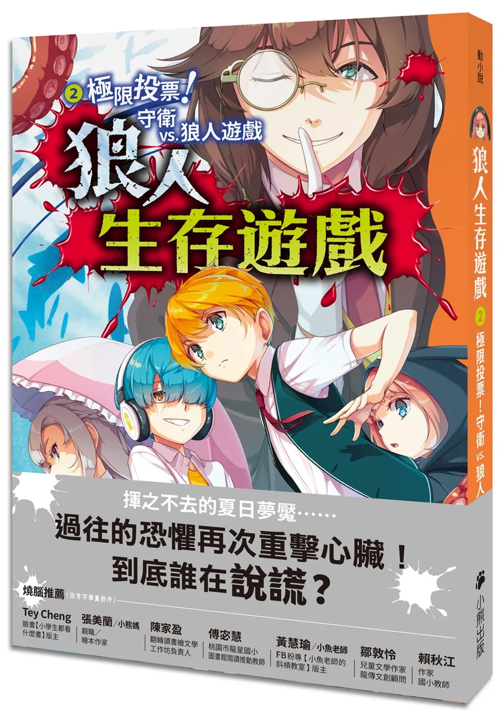 如果就情節來說,書中一次又一次狼人吞噬參賽者,有點「兒童不宜」,但是別擔心,一定要看到最後呵!故事結合「狼人遊戲」的規則,要從中找到狼人,所有被困住的人才能得救。讀者一邊讀,一定會跟著角色一起加入遊戲,並且試著從一段段對話,梳理出誰是「狼人」。燒腦的推理過程、縝密的邏輯推敲,以及最後讓人讚嘆的結局,非常期待這系列的新作品。──鄒敦怜(兒童文學作家、龍傳文創顧問)
