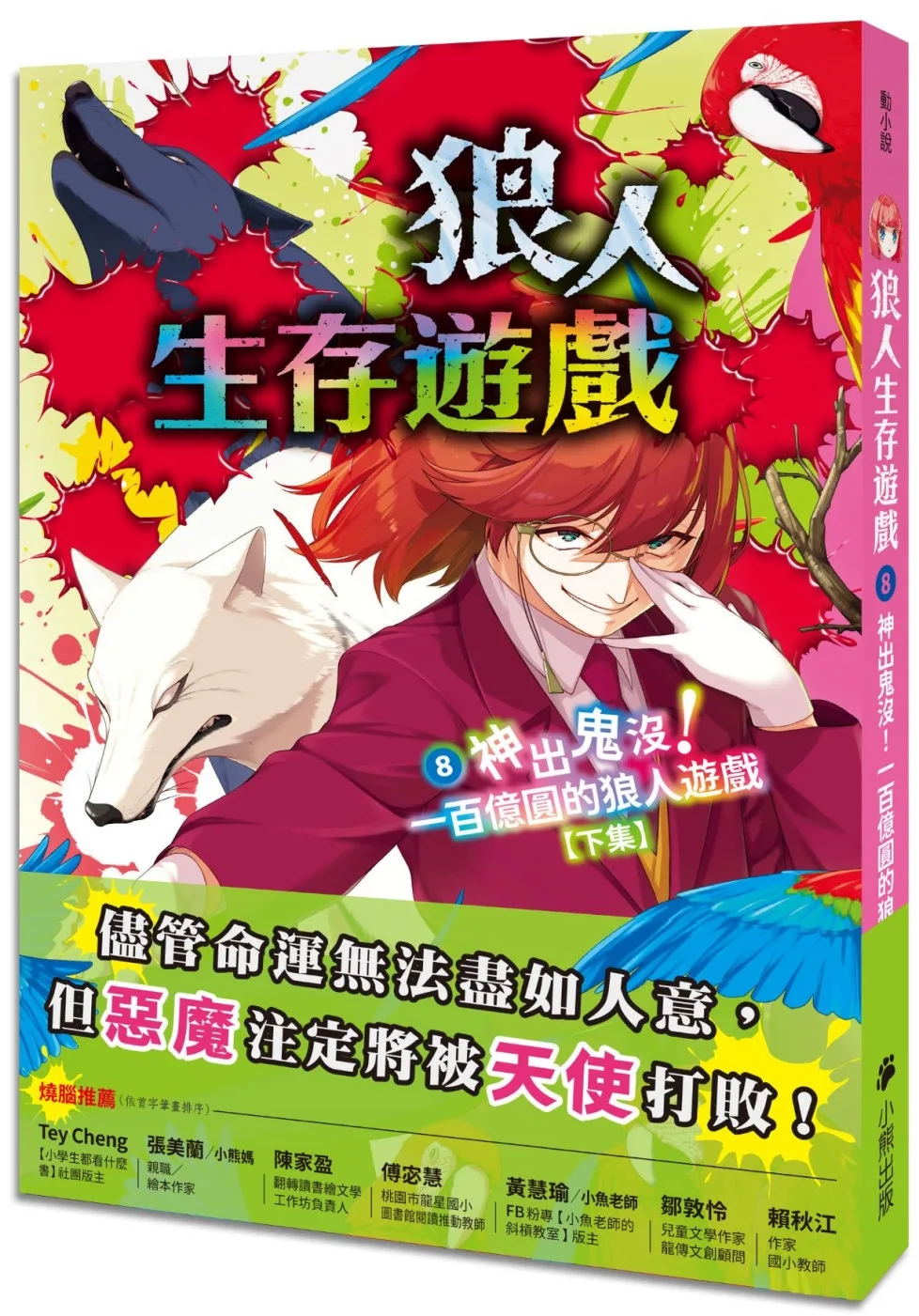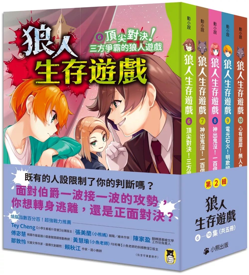 「狼人生存遊戲」系列以遊戲為始、以生存為終;以說服能力及換位思考鍛鍊邏輯推理、以實境互動及角色互補凝聚團隊合作。情節的鋪陳讓故事充滿吸引力,引導孩子在緊張的劇情中探索可能的結果。相信我們都能在書中擷取到各自所需的成長養分。──黃慧瑜/小魚老師(FB粉專【小魚老師的斜槓教室】版主)